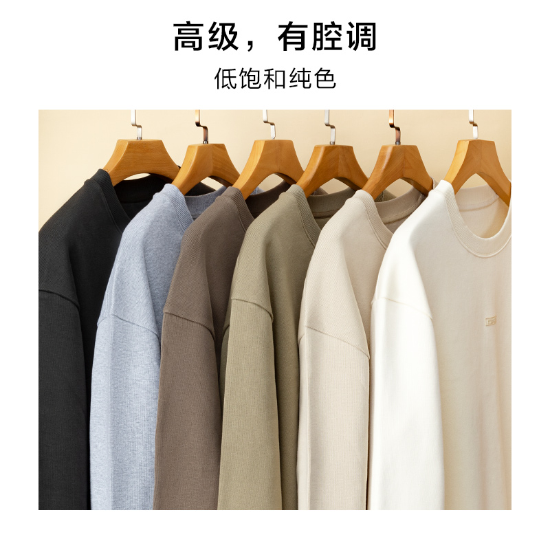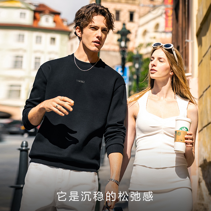 重磅宽松男士 秋季 圆领上衣外套A 卫衣男2025新款 班尼路S&K灰色美式