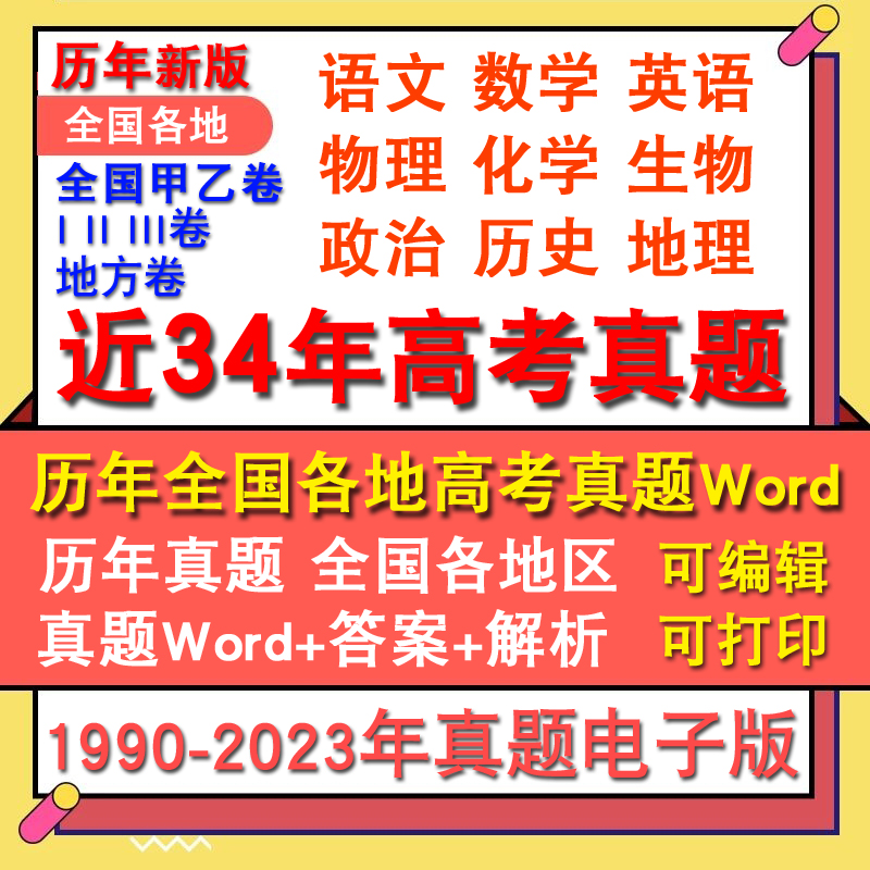 历年全国高考真题2023年新高考试卷试题语文数学英语物理化学生物政治历史地理文综理综全国卷甲卷乙卷电子版 真题试卷1卷2卷3卷