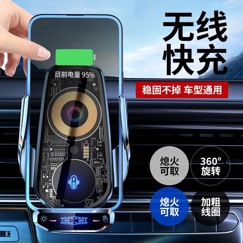 汽车手机支架新款 无线充电自动感应出风口车用导航固定车载手机架