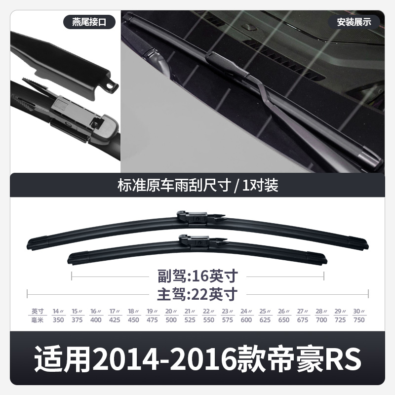 适用吉利帝豪RS雨刮器原装 15原厂16无骨胶条17汽车前后雨刷片 14款