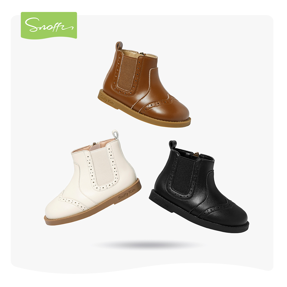 斯纳菲女童靴子2025秋冬新款 宝宝黑色小皮靴软底透气银色小皮鞋