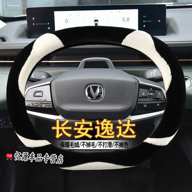 毛绒免缝四季 长安逸达方向盘套冬季 通用防滑把套 蓝鲸NE 适用23款