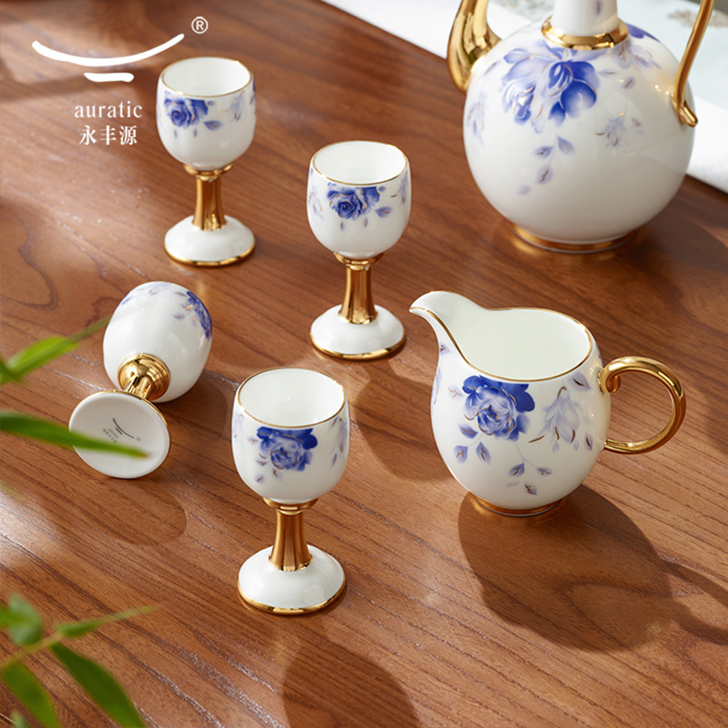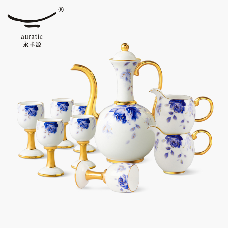 高档礼盒装 国瓷永丰源温馨玫瑰12头酒陶瓷酒具套装 白酒杯8人位