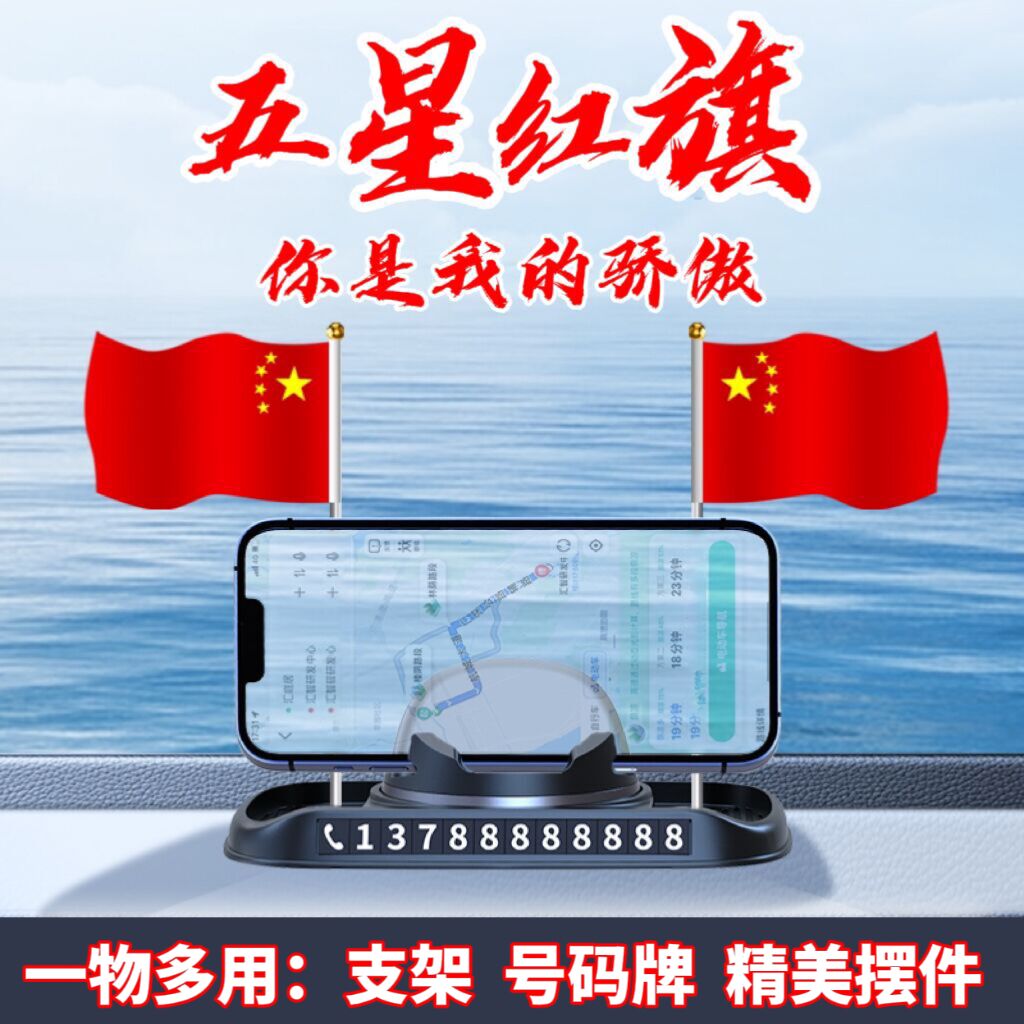 车载摆件汽车内装 饰用品大全中控台香水高档爱国五星小红旗车摆件