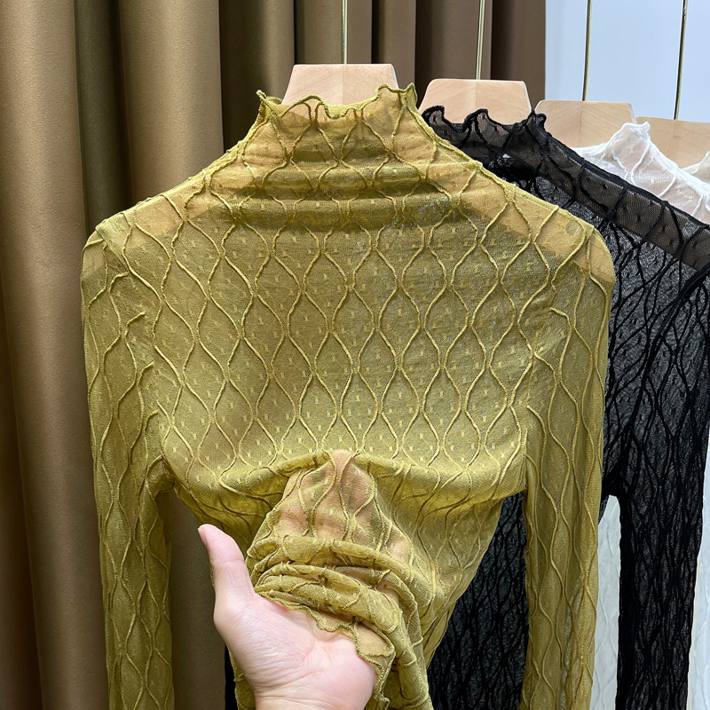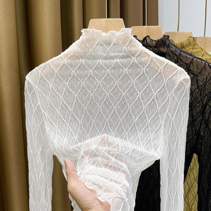 长袖 高领蕾丝内搭小衫 纱衣白色网纱打底衫 洋气薄款 女春秋2025新款