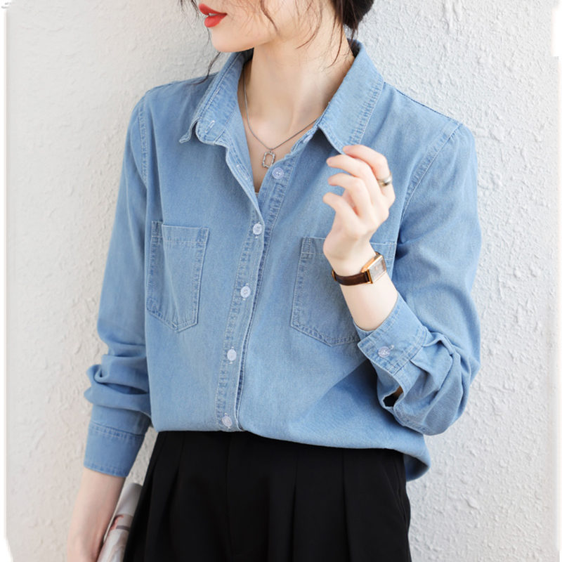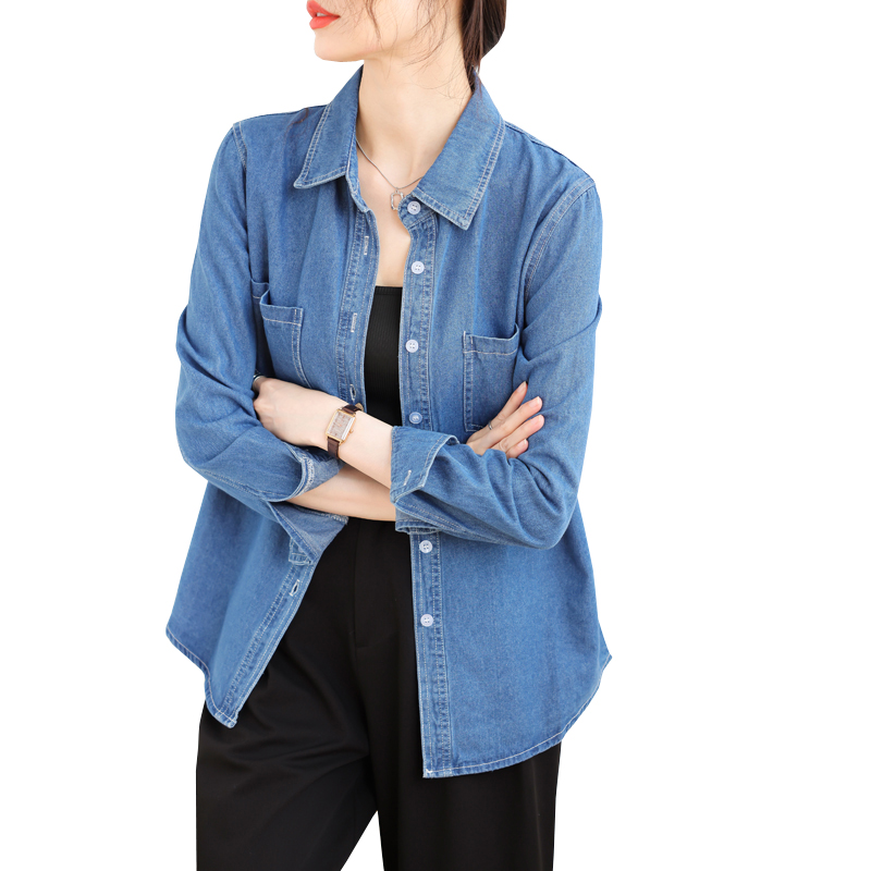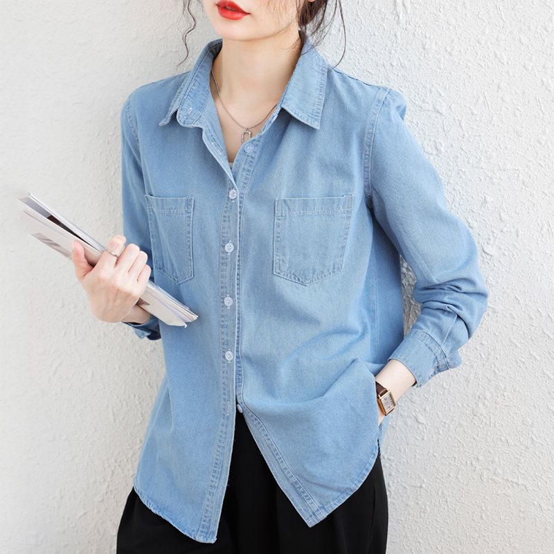 高端水洗牛仔衬衫 打底 女休闲港风设计感小众宽松百搭叠穿衬衣薄款