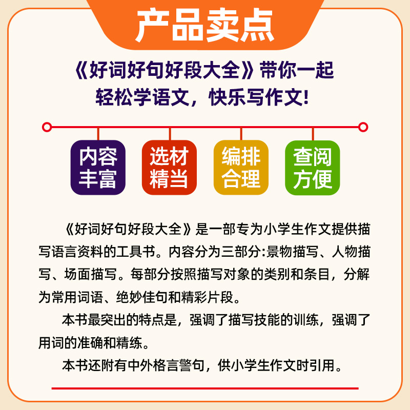 小学生作文描写宝典好词好句好段大全官方正版 内容丰富选材精当编排合理查阅方便轻松学语文快乐学作文强调描写技能训练