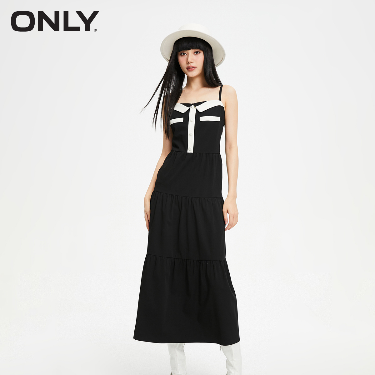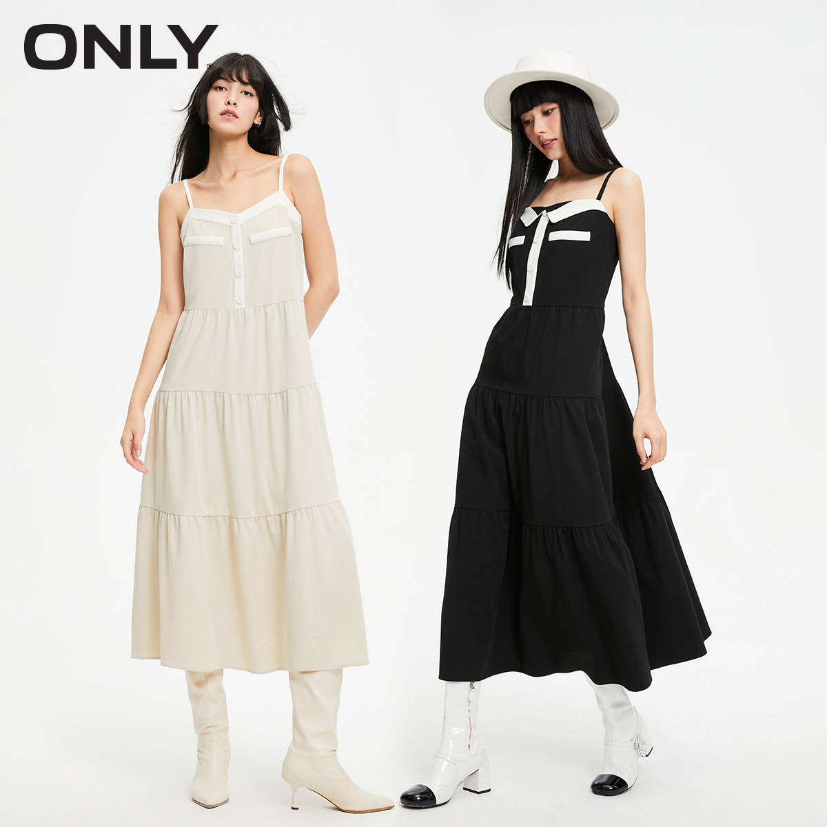 V领蛋糕裙吊带中长款 时尚 秋季 连衣裙女 ONLY奥莱