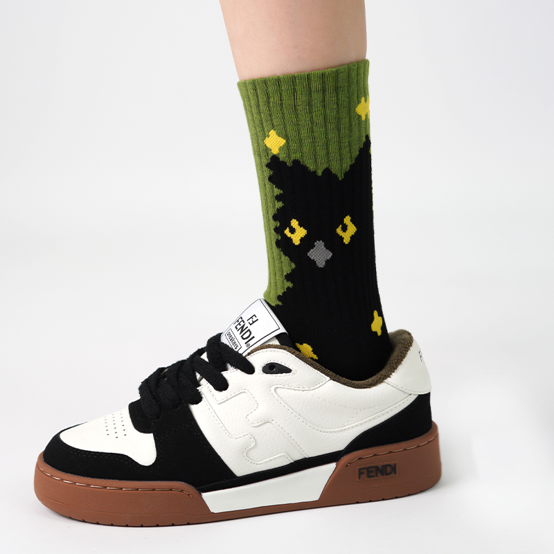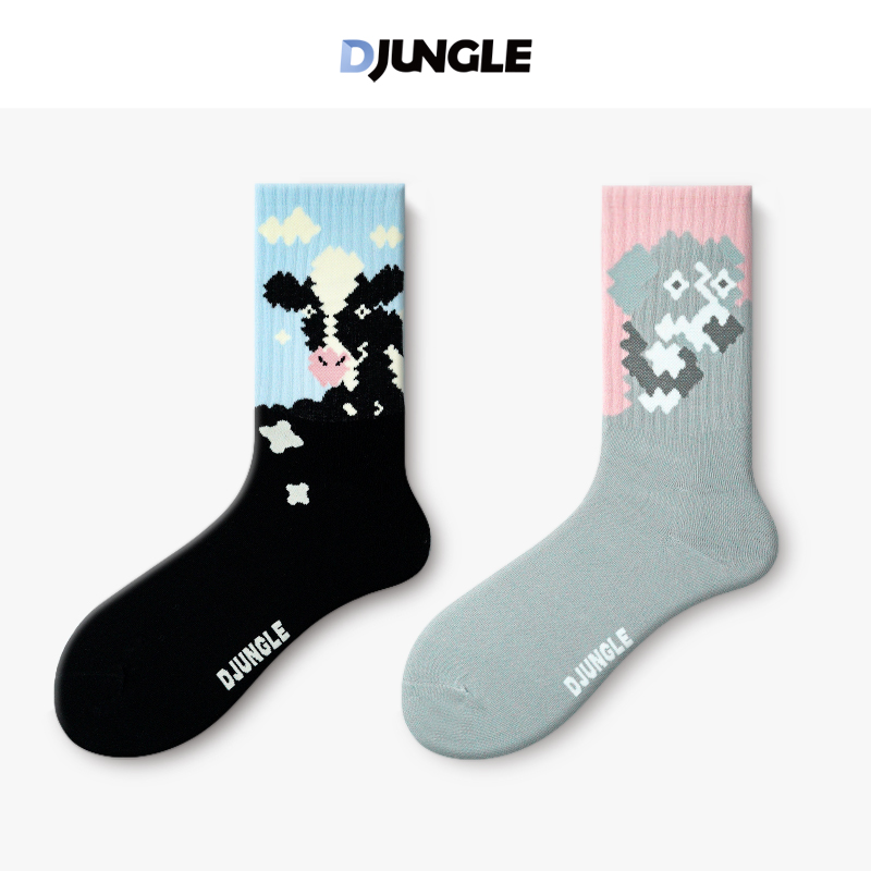 江狗卡通插画袜子女可爱日系秋冬中筒袜设计感休闲情侣长袜棉春秋