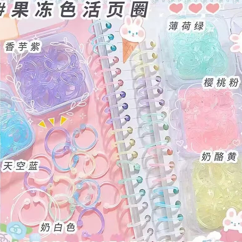 彩色透明果冻色书圈diy活页圈活页扣可开合可拆塑料环打孔机订书圈活页夹环线圈环装 订成册 订环书本装