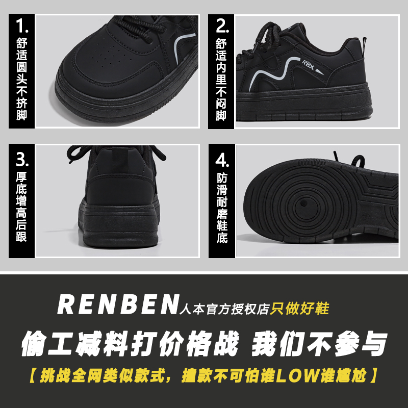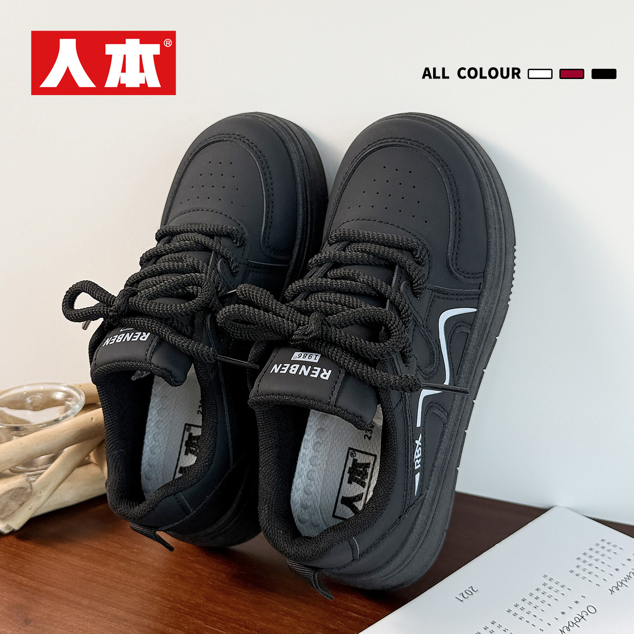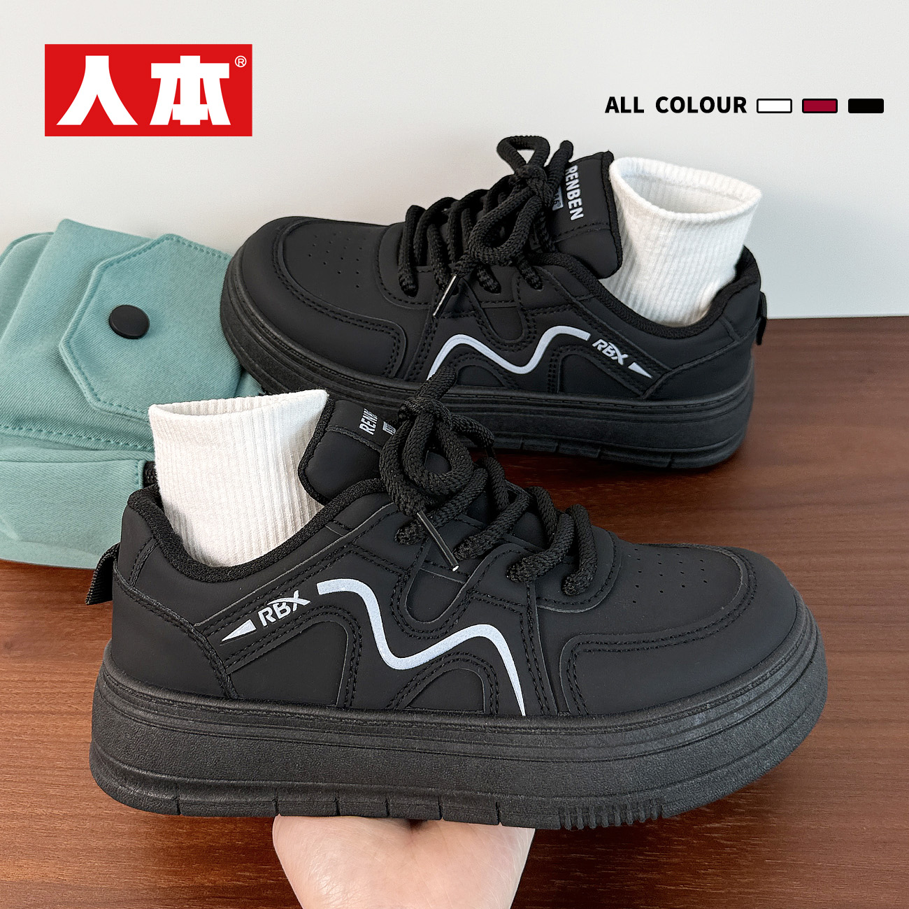 女款 子女休闲运动小黑鞋 2025新款 透气厚底百搭鞋 秋季 人本黑色板鞋
