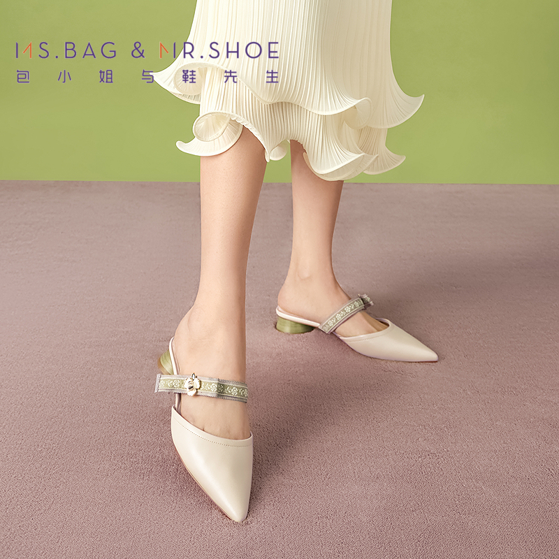 DYOWOZ 女增高3.3cm真皮厚底外穿 东园物作日系勃肯软木半包头拖鞋