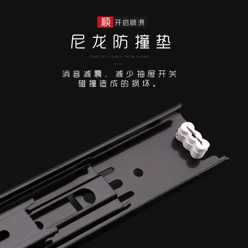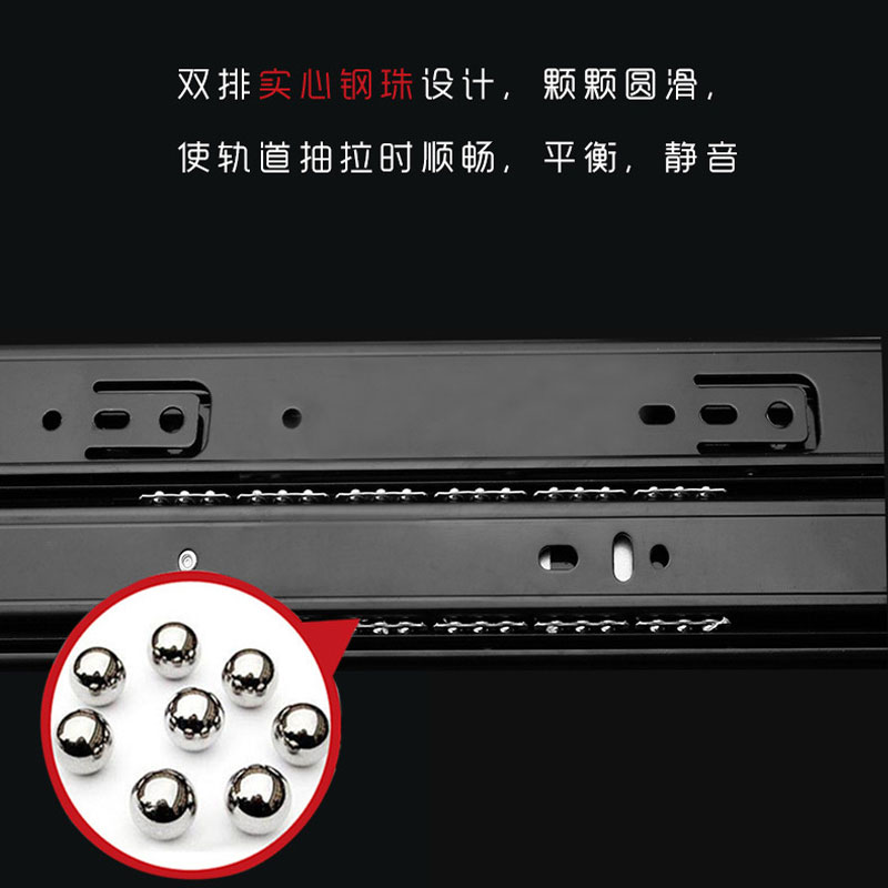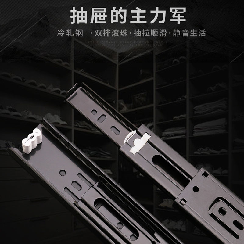 加厚抽屉轨道三3节滑轨不锈钢静音滚珠滑道家用3二节阻尼缓冲导轨