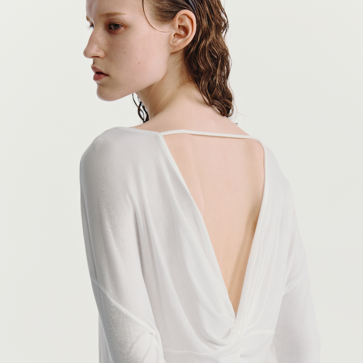 3369 HAVVA莱赛尔天丝微透超薄露背空调衫 宽松女士上衣2025夏季