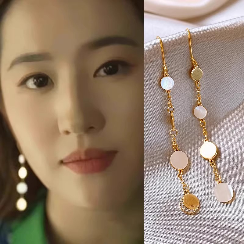 耳钉轻奢高级感长款 爆款 耳饰女 贝壳流苏耳环2025年新款 刘亦菲同款