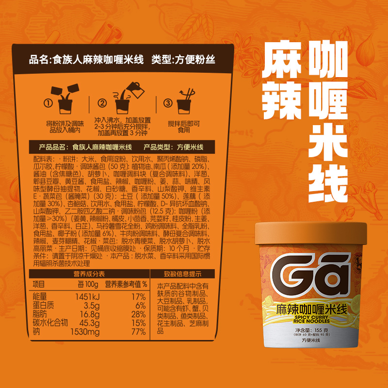 食族人麻辣咖喱米线155g 米线粉丝麻辣咖喱夜宵速食米粉 1桶正品