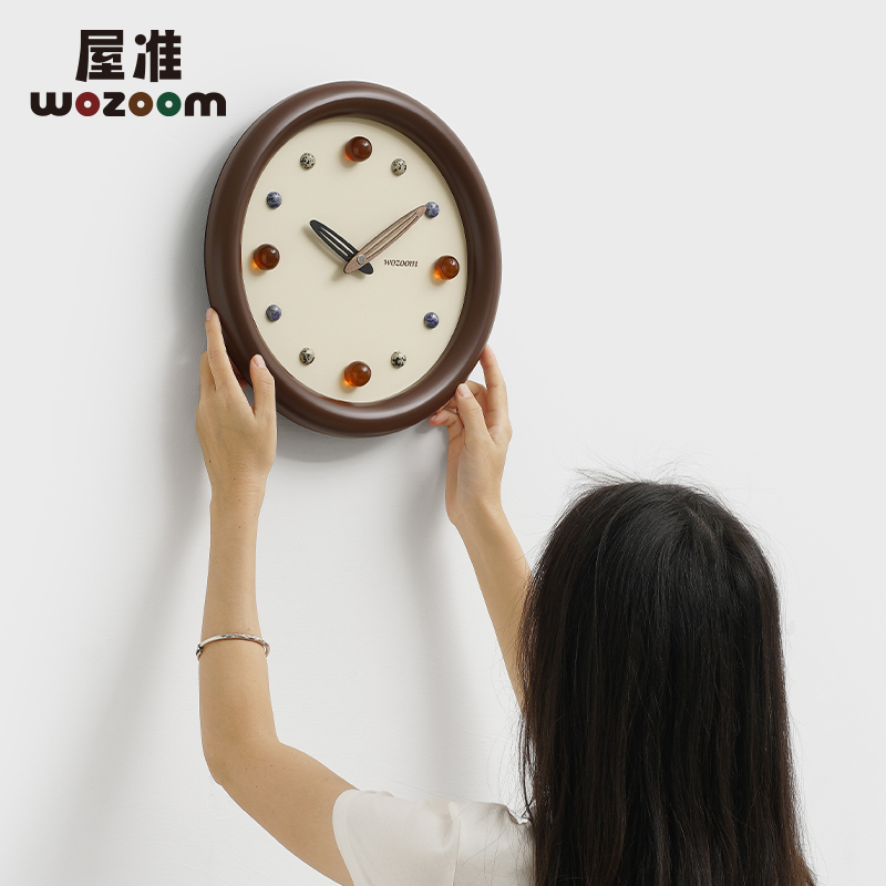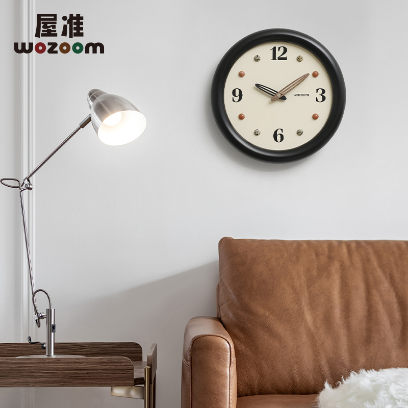 WOZOOM屋准免打孔中古风复古挂钟客厅轻奢创意网红时钟表家用挂墙