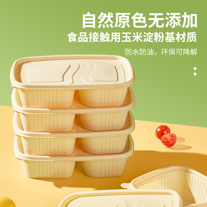 美宝琳一次性餐盒分格带盖打包盒食品级玉米淀粉可降解露营餐具