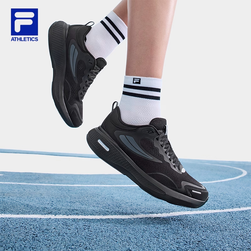 黑色防滑运动跑步鞋 黄景瑜同款 2025新款 男鞋 FILA斐乐柔云3路跑鞋