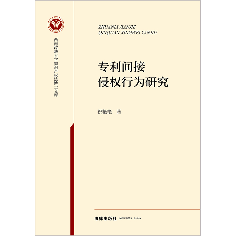 法律出版 祝艳艳著 社9787519772086 专利间接侵权行为研究 2022新书正版