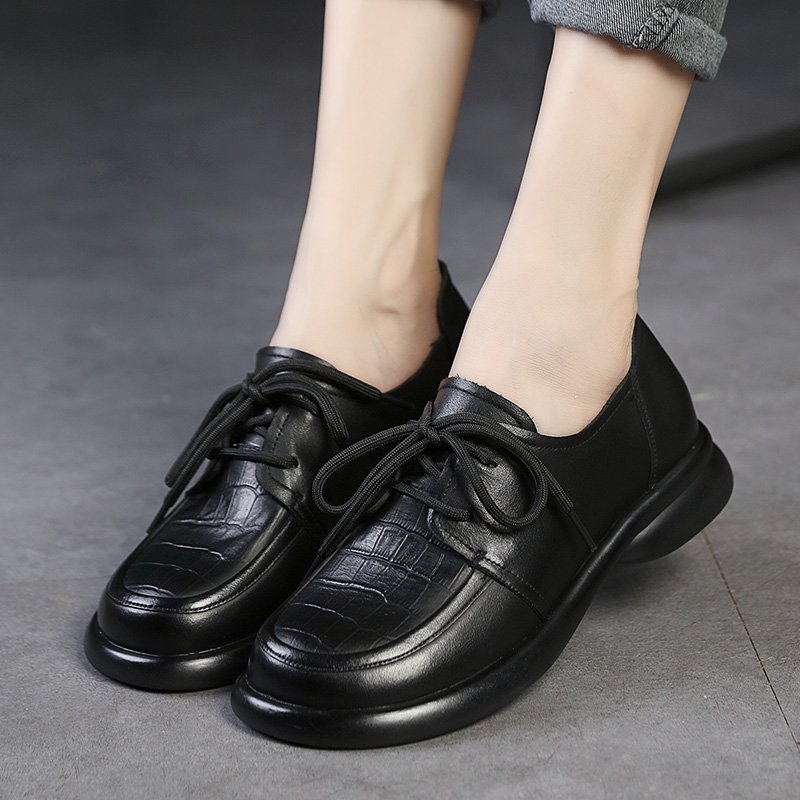 时尚 41一43头层牛皮复古单鞋 潮流女皮鞋 女鞋 平底大码 2025年新款