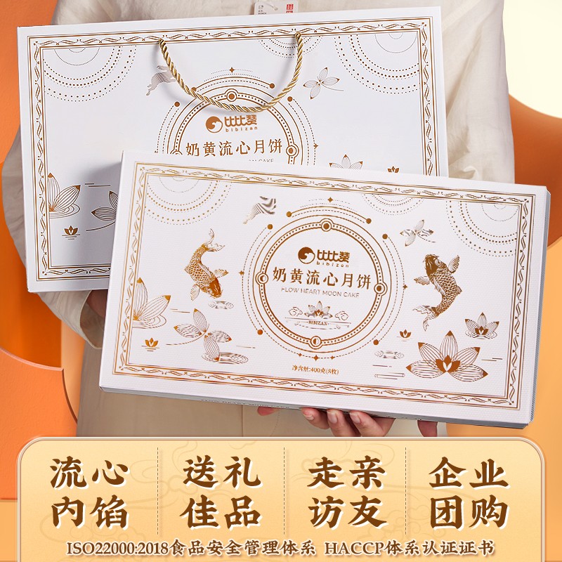 比比赞奶黄流心月饼礼盒中秋送礼长辈传统广式 糕点心休闲零食小吃