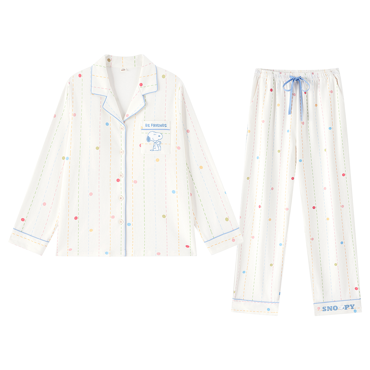 冬季 带胸垫长袖 秋天家居服秋冬 秋季 史努比纯棉睡衣遮胸防凸点女款
