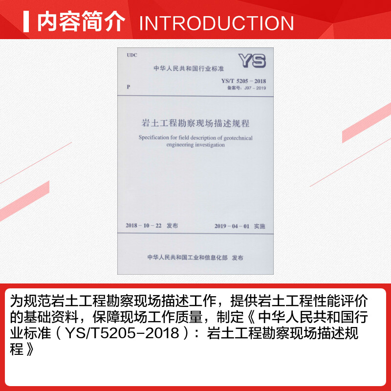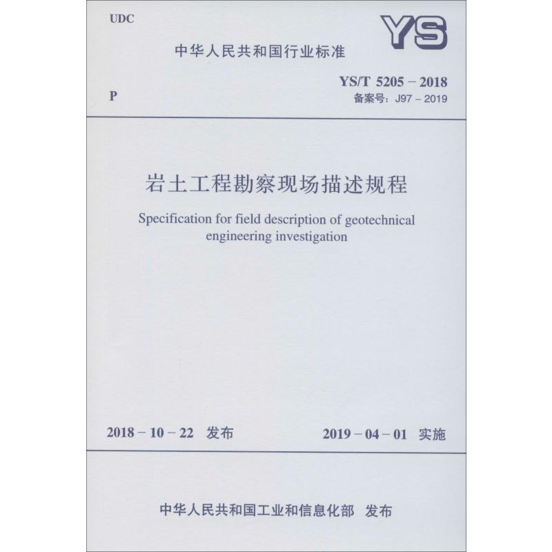 5205 专业科技 新 中国有色金属工业协会 著 备案号 2018 水利 岩土工程勘察现场描述规程 J97 建筑 2019