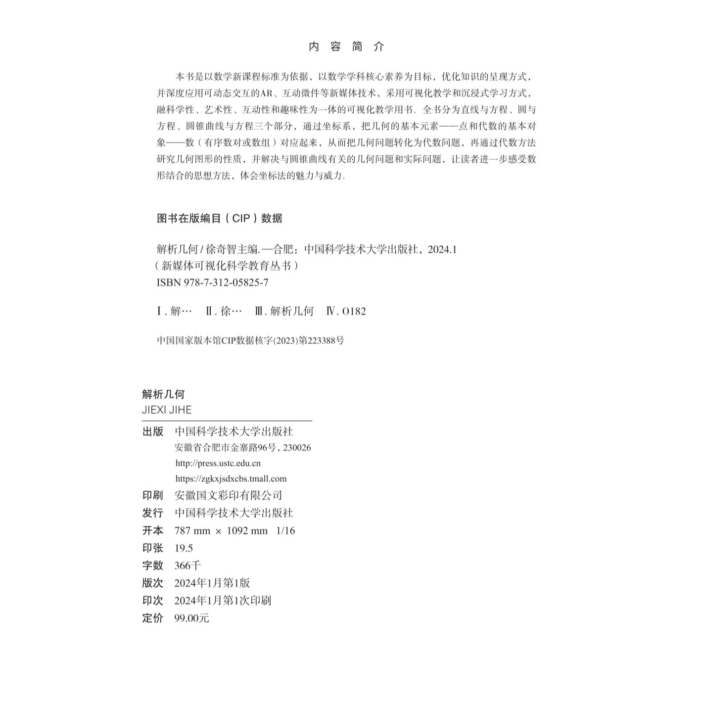中科大新书高中数学解析几何 高中数学联赛竞赛培优高考数学几何芷阅 徐奇智高一高二三立体几何数学试题新媒体可视化科学教育丛书