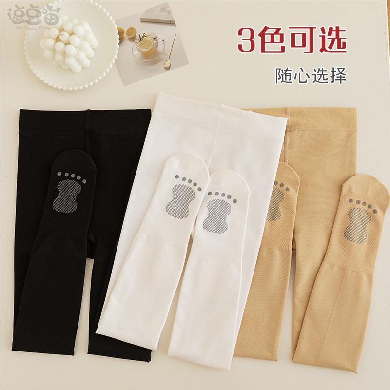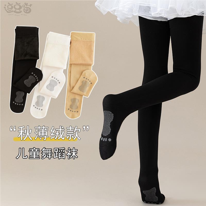 儿童舞蹈袜春秋款 纯棉磨毛学生袜薄绒女宝宝连体袜 加厚白色打底裤