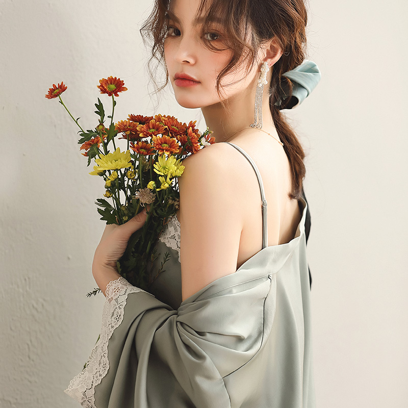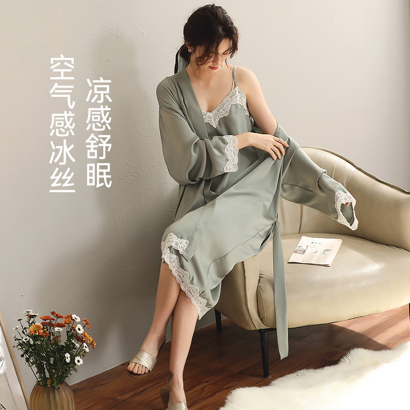新一步冰丝超薄中长款 睡衣女士蕾丝V领吊带凉感性感两件套家居服