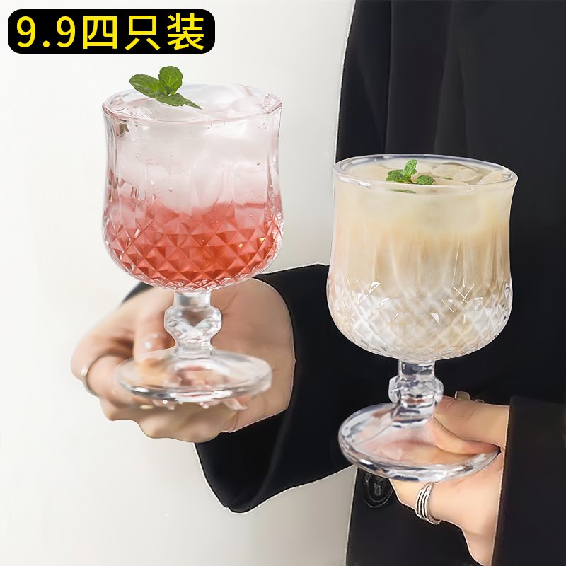 玻璃杯女可爱高颜值红酒杯浮雕高脚杯家用饮料果汁杯轻奢喝酒杯子