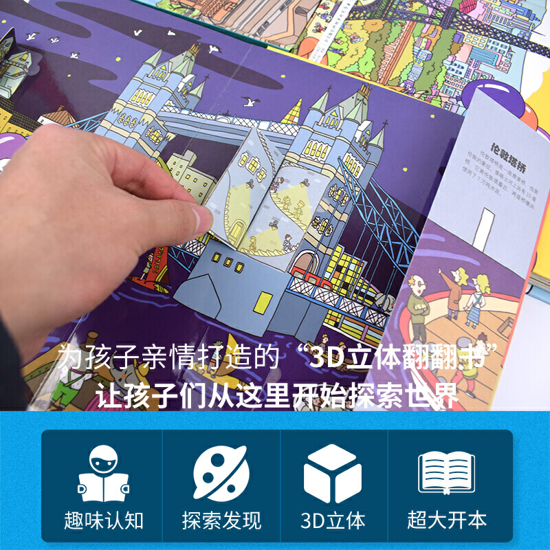 老渔文化 社 超大开本精装 纺织出版 中 编绘 宝宝婴幼儿早教阅读书籍 儿童立体翻翻书 硬壳绘本小学生3D立体书 伦敦 飞箱游世界