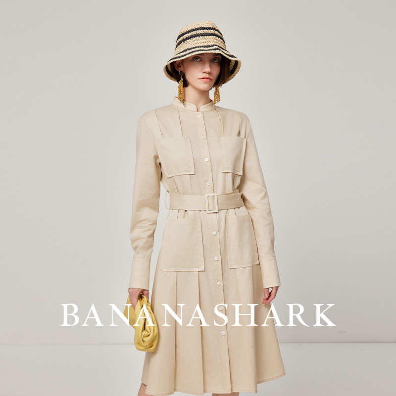 polo领短袖 新款 乐町条纹拼接连衣裙女2025年秋季 裙子 海盐拿铁