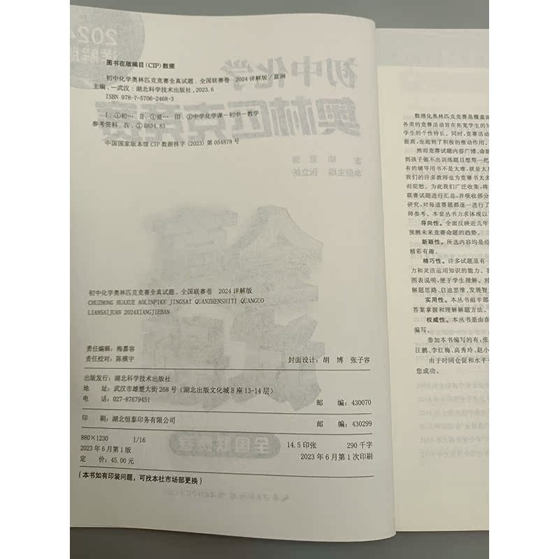 近期竞赛题型 2024详解版 未来竞赛 走势和命题偏好参考指南 社 正版 湖北科学技术出版 初中化学竞赛全真试题全国联赛卷