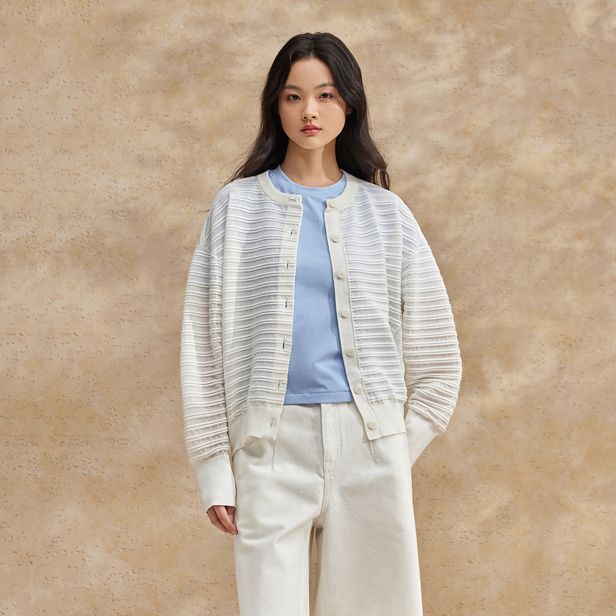 毛衣DDR2UD5449 春夏气质温柔圆领薄款 播小香风针织开衫 女商场同款