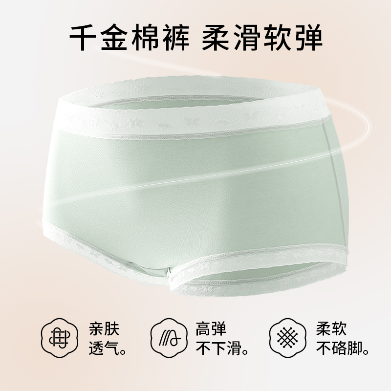 透气蕾丝新款 女7A抑菌秋季 秋鹿纯棉裆内裤 中腰三角短裤 3条装