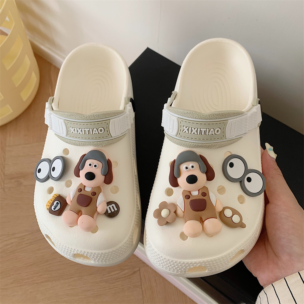 男女 外穿踩屎感凉拖鞋 细细条网红可爱卡通小狗DIY情侣洞洞鞋 夏季