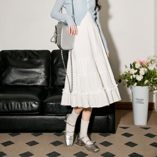 工装 a字中长款 半身裙 新款 白色高腰抗皱速干伞裙女春秋2025年夏季