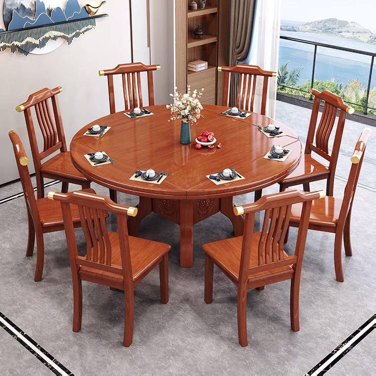 新中式 实木餐桌椅组合可折叠变圆家用小户型正方形吃饭八仙桌子