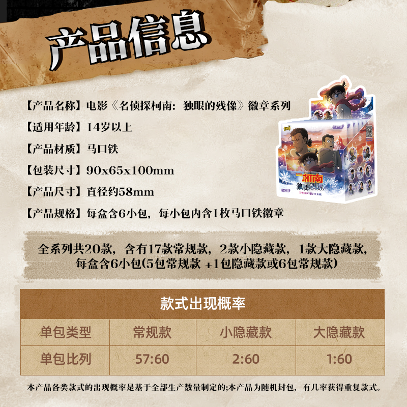 残像 卡游 独眼 名侦探柯南 徽章系列周边马口铁吧唧谷子 电影