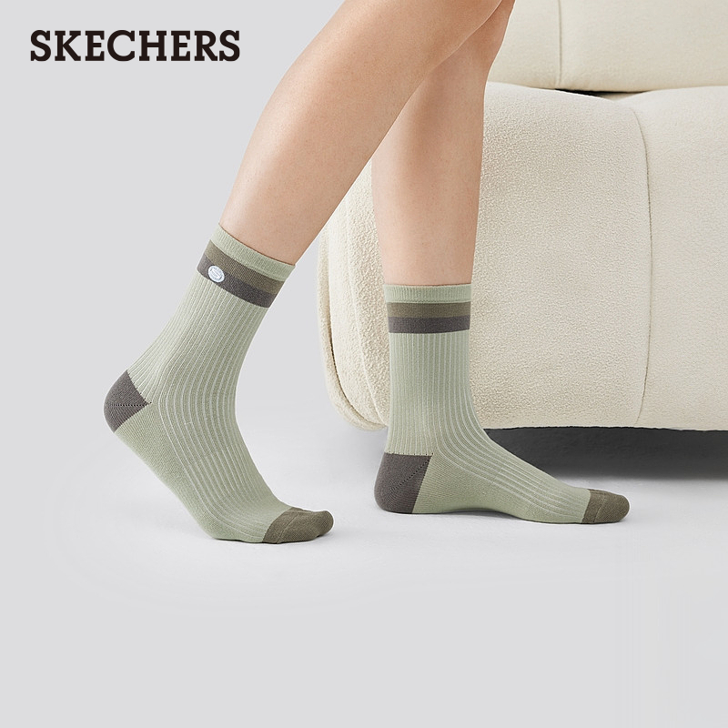 Skechers斯凯奇男女同款 中筒袜 基础休闲系列运动袜舒适百搭3双装