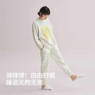 红豆半边绒睡衣女加厚保暖抗静电可外穿暖暖绒套头家居服套装 秋冬