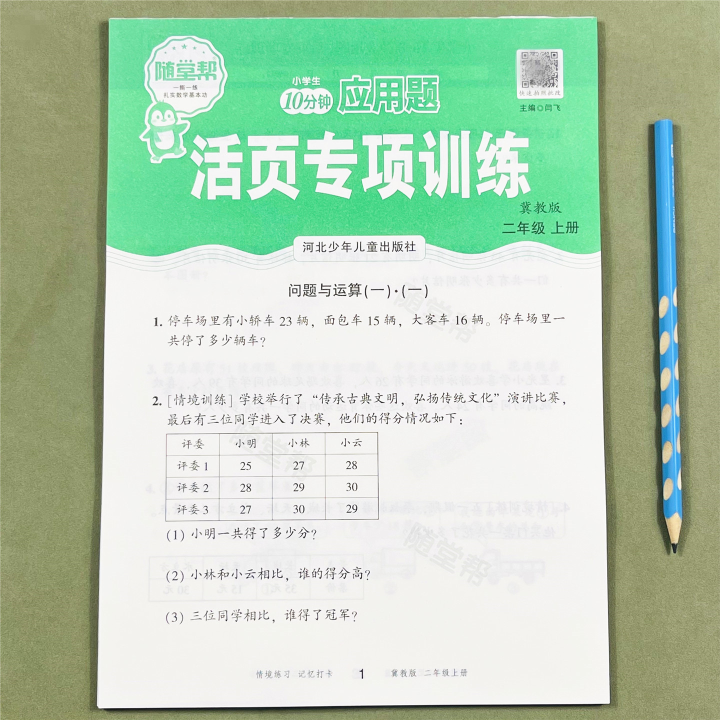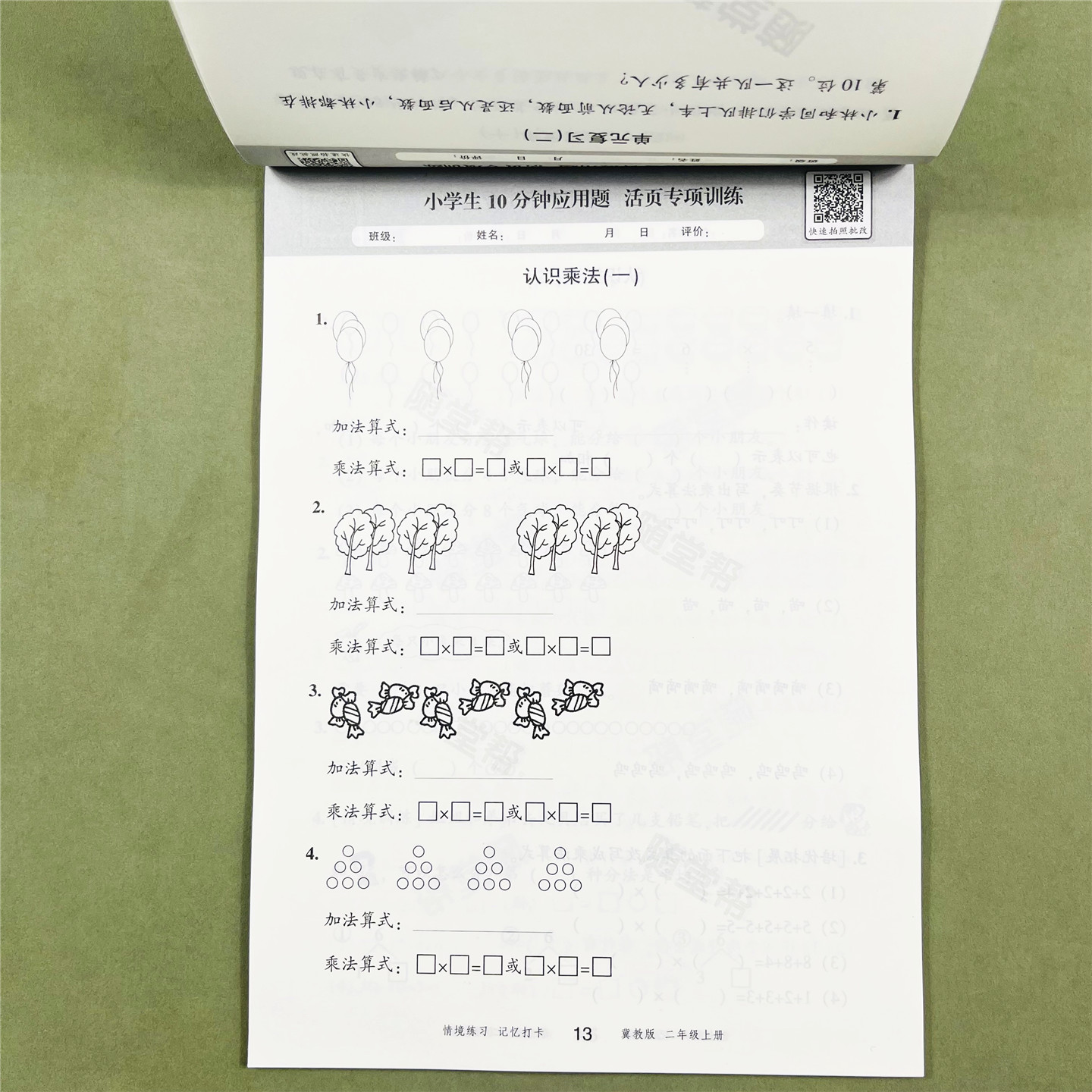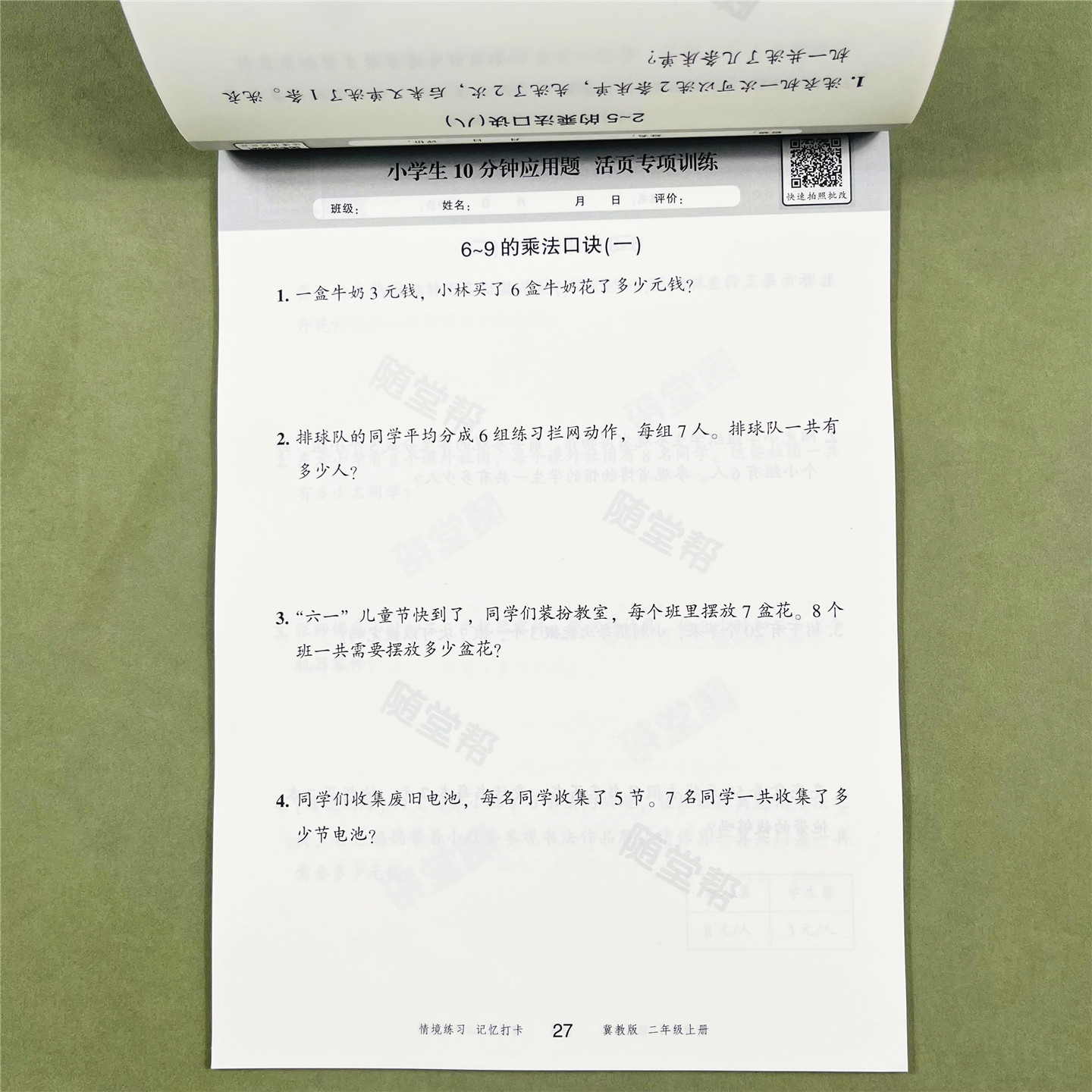 小学冀教版 二年级上册数学应用题天天练活页练习每日10分钟强化训练应用题大全小学生2年级上学期数学配套教辅练习册乘法口诀练习