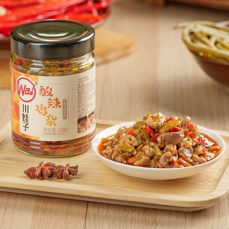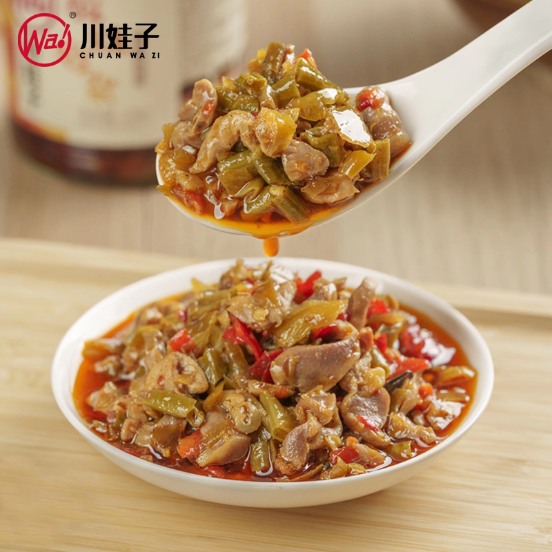 川娃子鸡杂酸辣肉末豇豆下饭酱酸豆角泡菜农家风味酸豇豆拌面菜酱