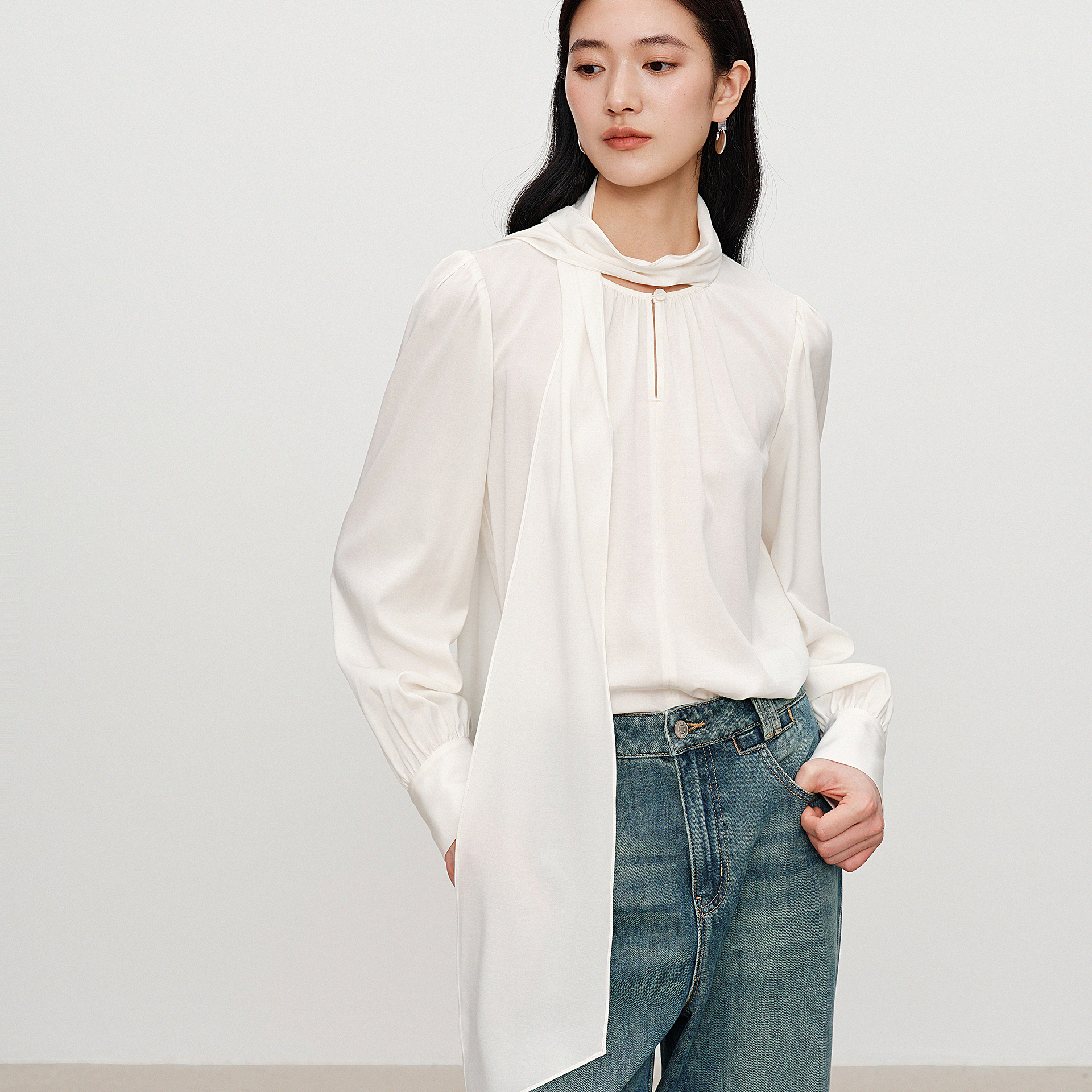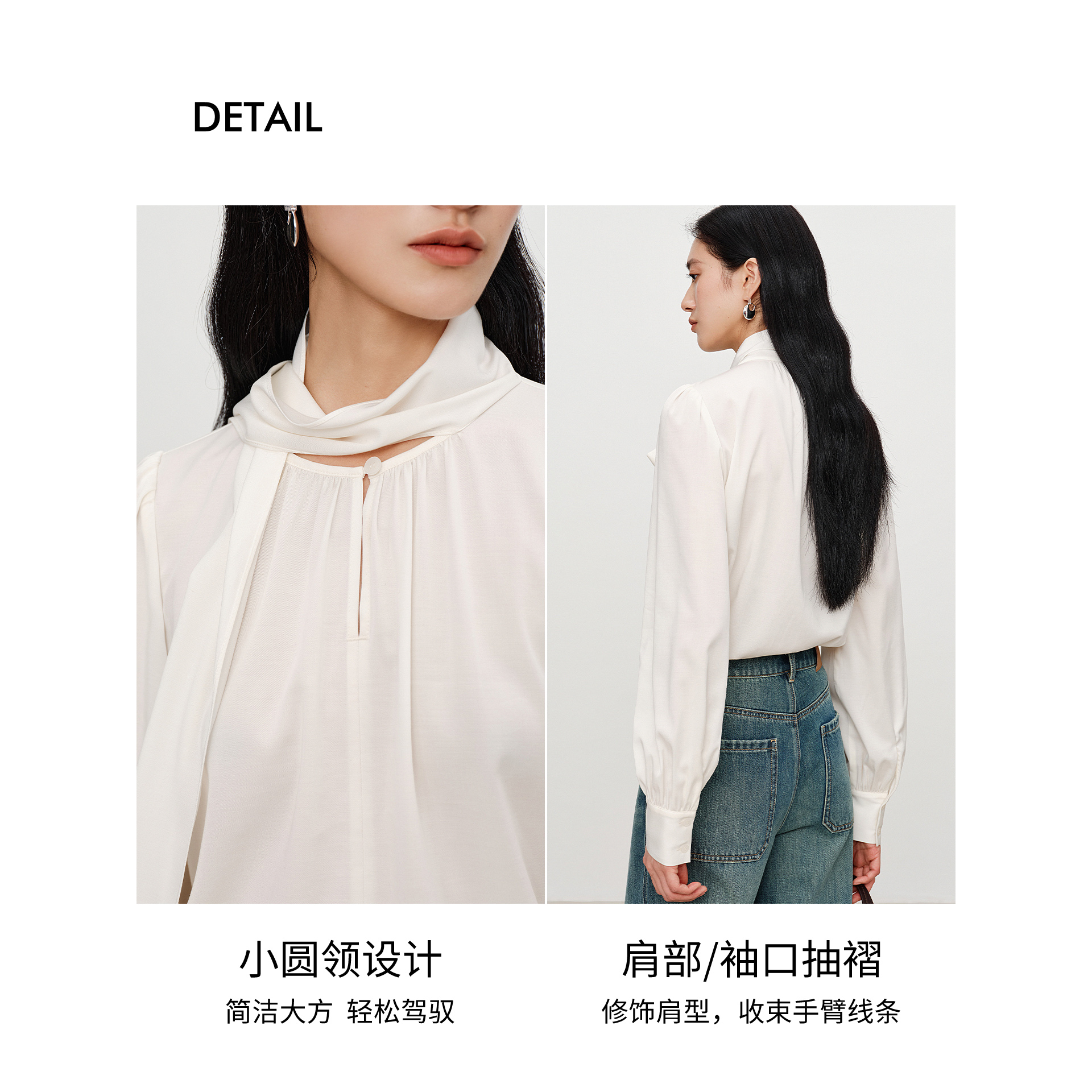 高端天丝羊毛法式 新款 上衣 女2025年秋装 衣香丽影白色大蝴蝶结衬衫