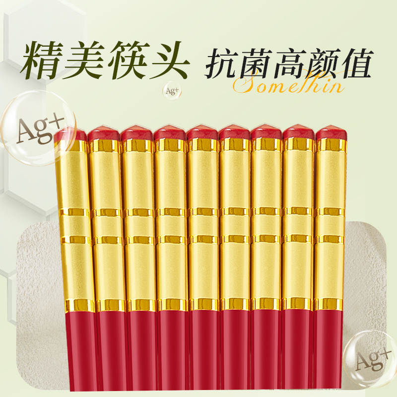 高档家庭合金筷子无漆不易发霉抗菌耐高温防霉餐厅防滑 五双装