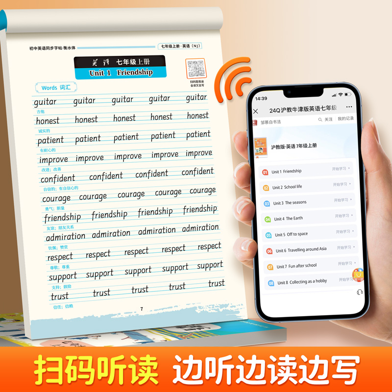 邹慕白2025年秋新版 衡水体初中七八年级上册下册英语练字帖课本同步初中生专用字帖手写体每日一练初一初二字母单词练习 沪教牛津版