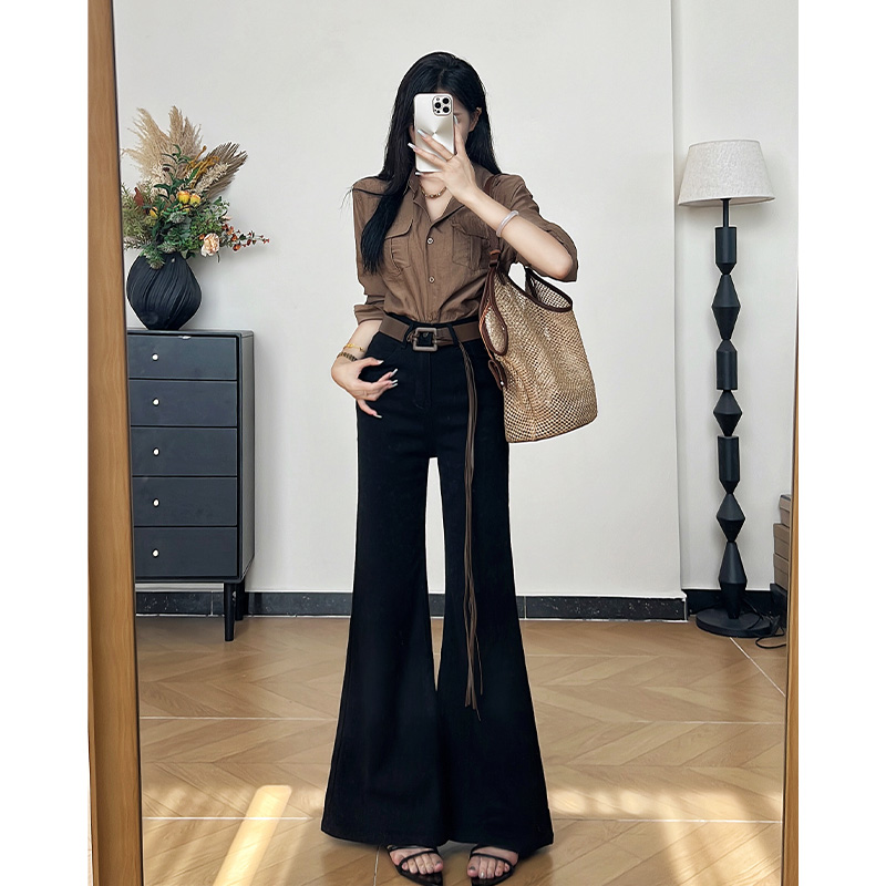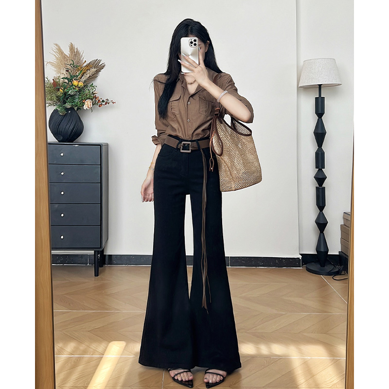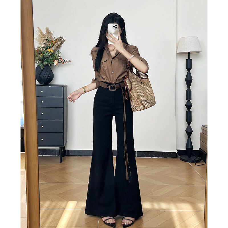 乔栈早秋新款 女高腰提臀显瘦气质穿搭 黑色老钱风不贴腿喇叭牛仔裤
