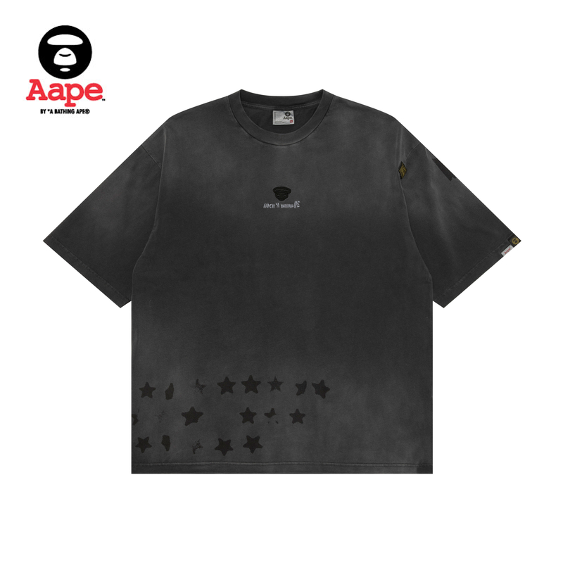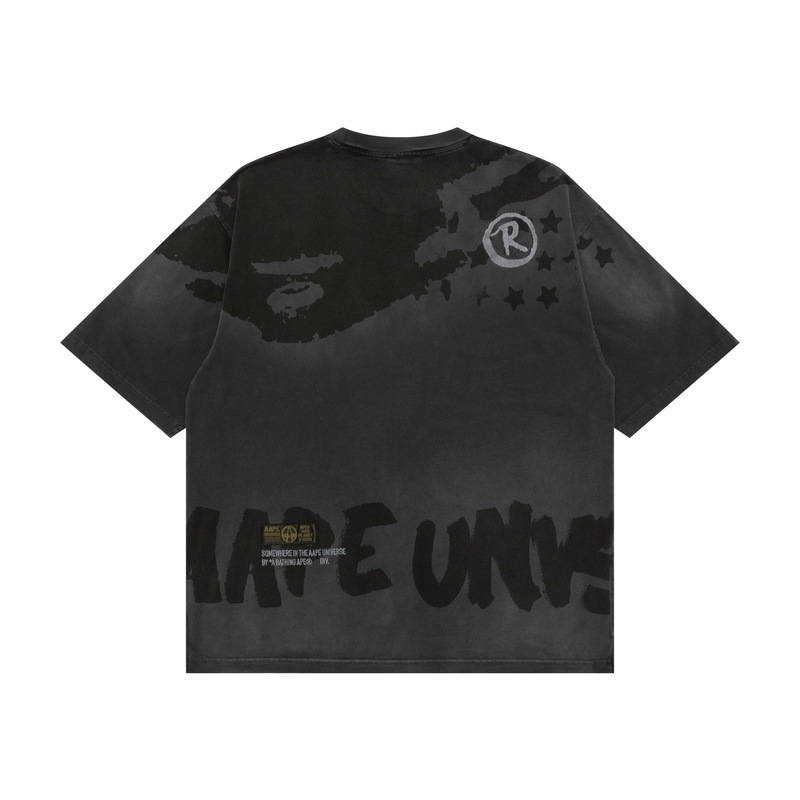 Aape旗舰店男装 T恤1741XXP 秋冬水洗做旧猿人刺绣休闲短袖